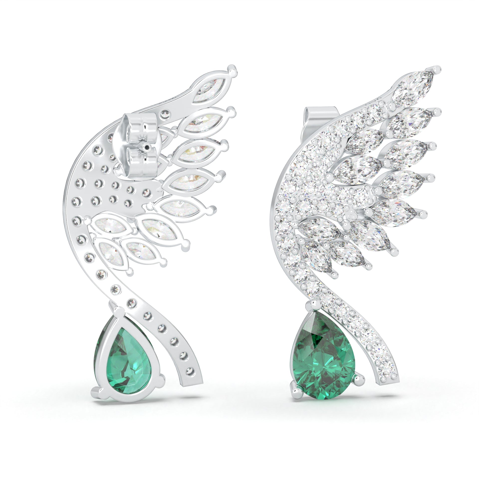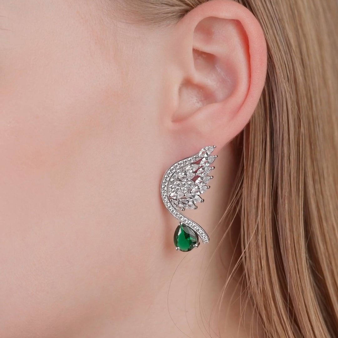 The 'Heroic Phoenix Wings' earrings are a bold statement of courage and triumph. Featuring a striking design of the phoenix’s wings in full flight, each earring is adorned with diamonds that shine like embers from a newly ignited flame.