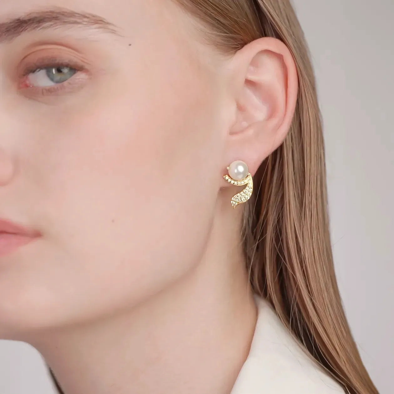 The 'Pearlescent Wings I' earrings blend the ethereal beauty of pearls with the strength of the phoenix’s wings, creating a harmonious design that is both soft and powerful.