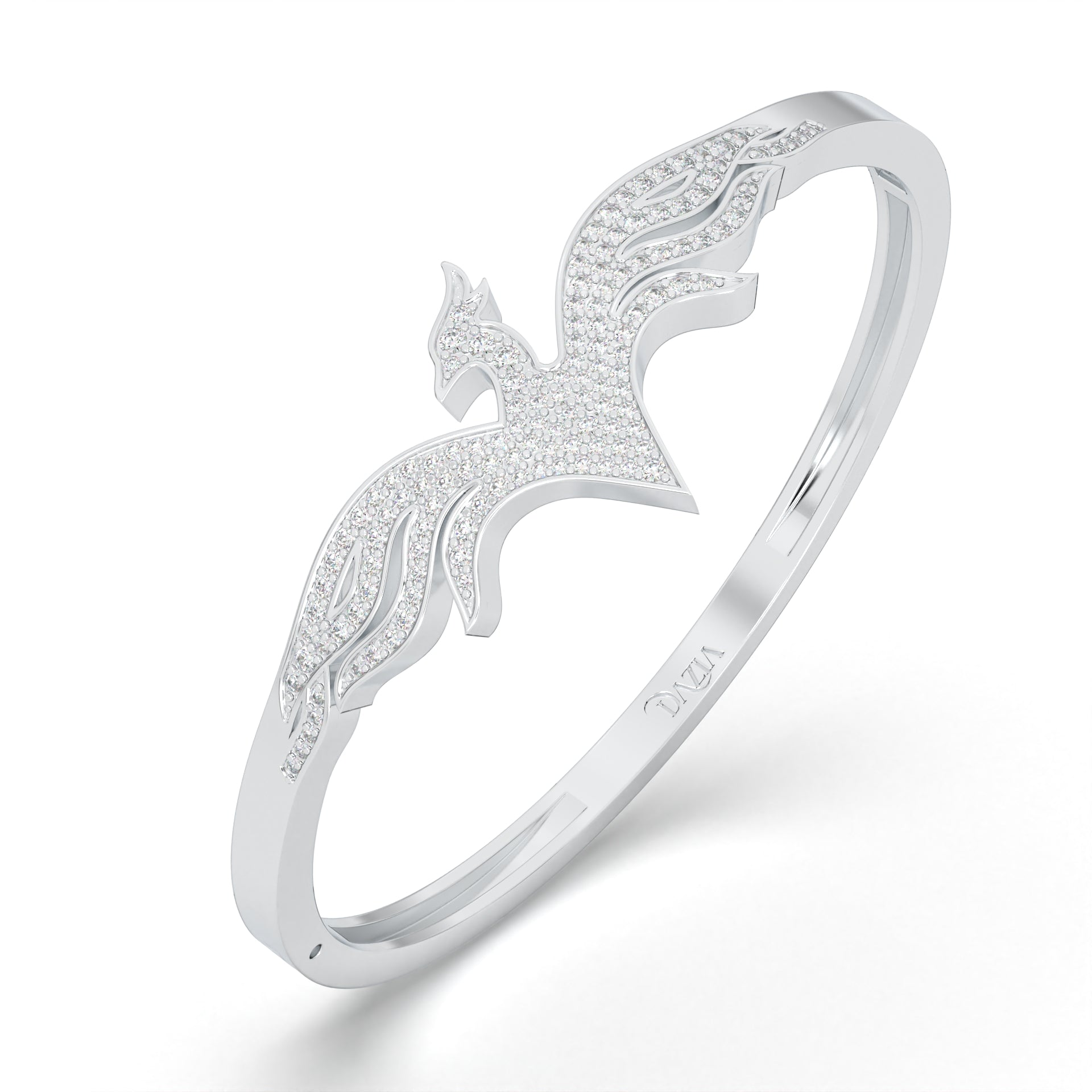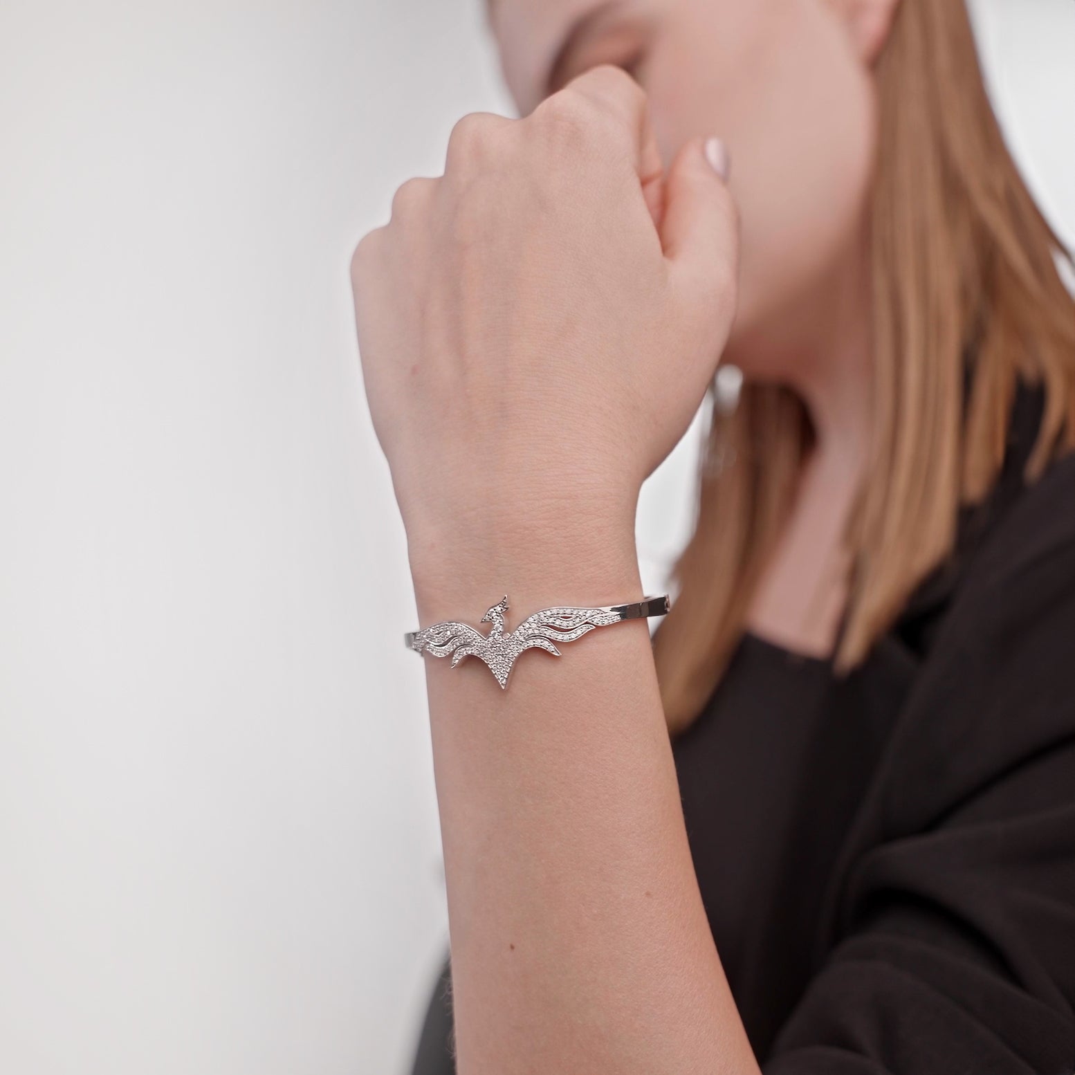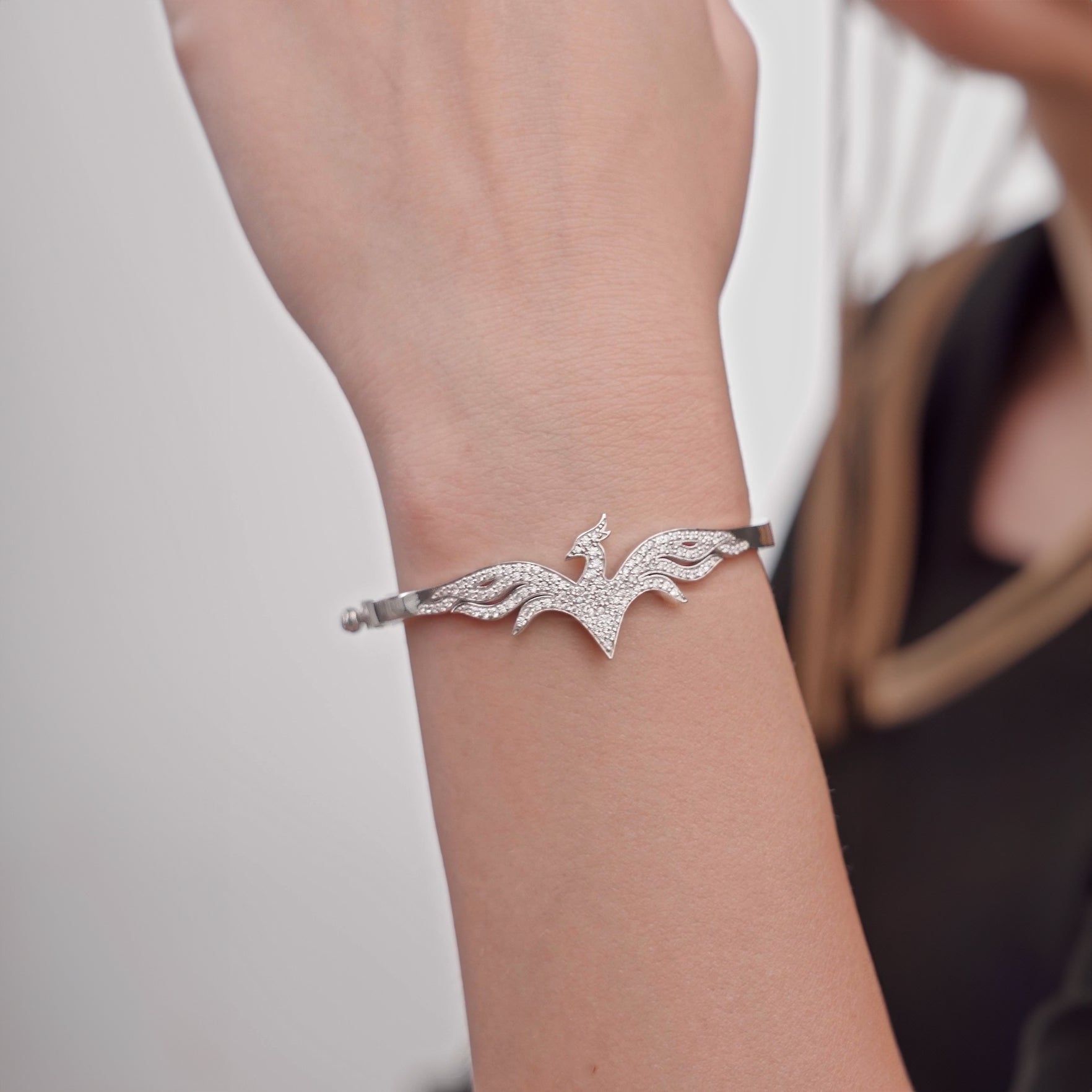 The 'Phoenix Grace' bracelet is an exquisite blend of delicate beauty and transformative power. Its design flows like the graceful rise of the phoenix, adorned with diamonds that shimmer like stars on the horizon of a new beginning.